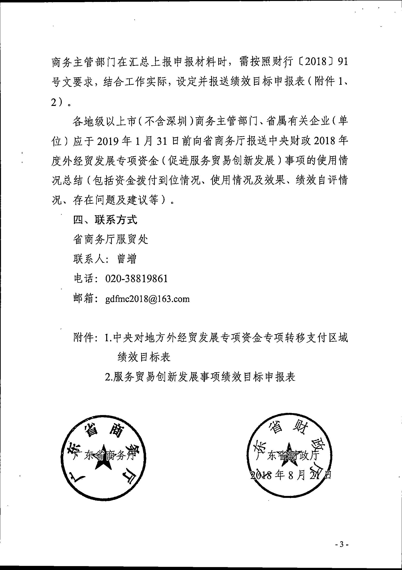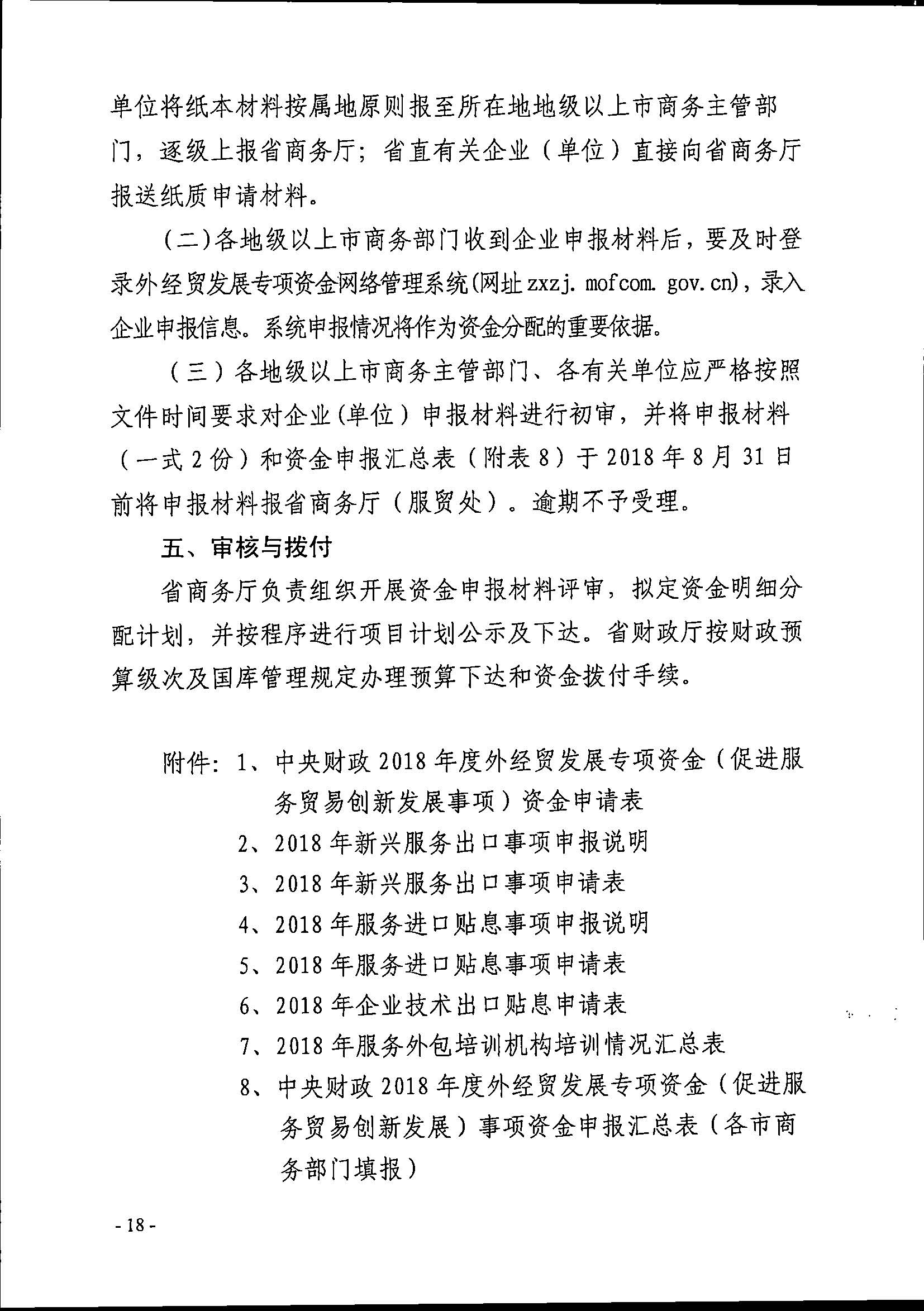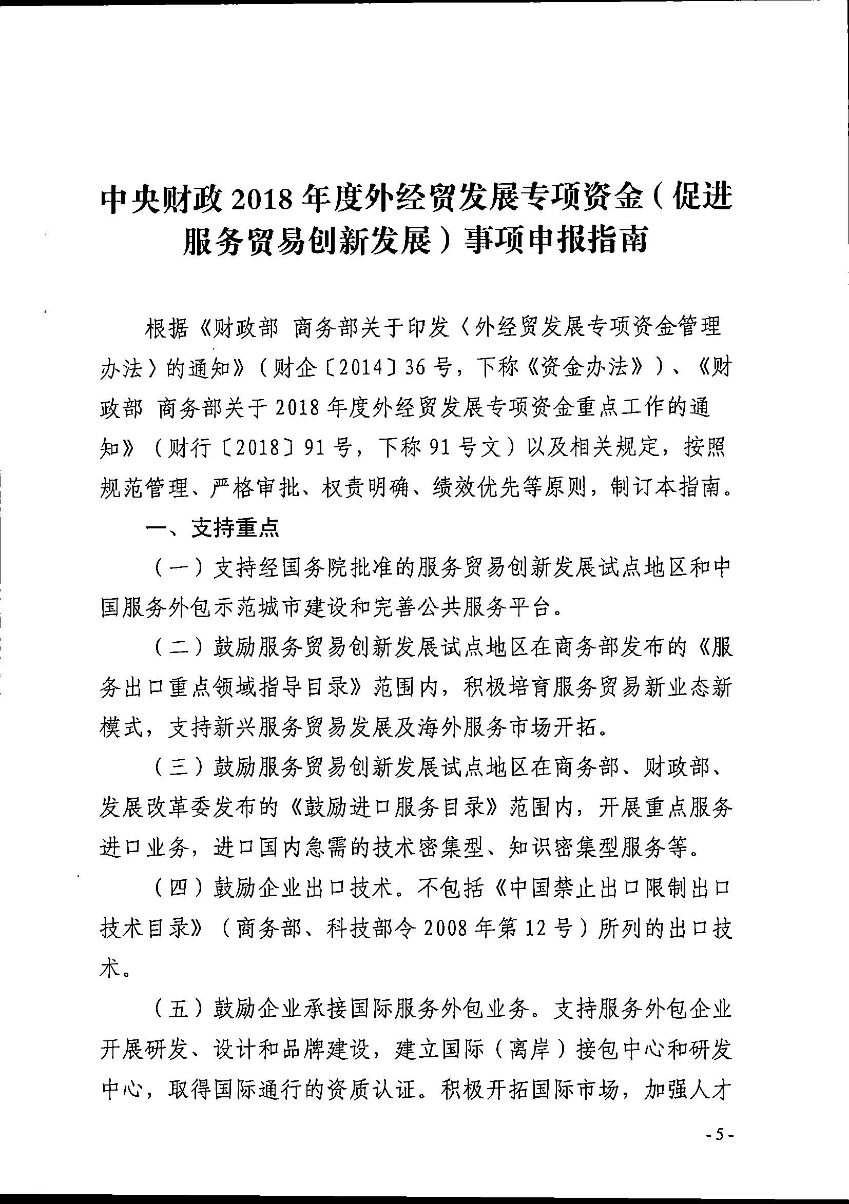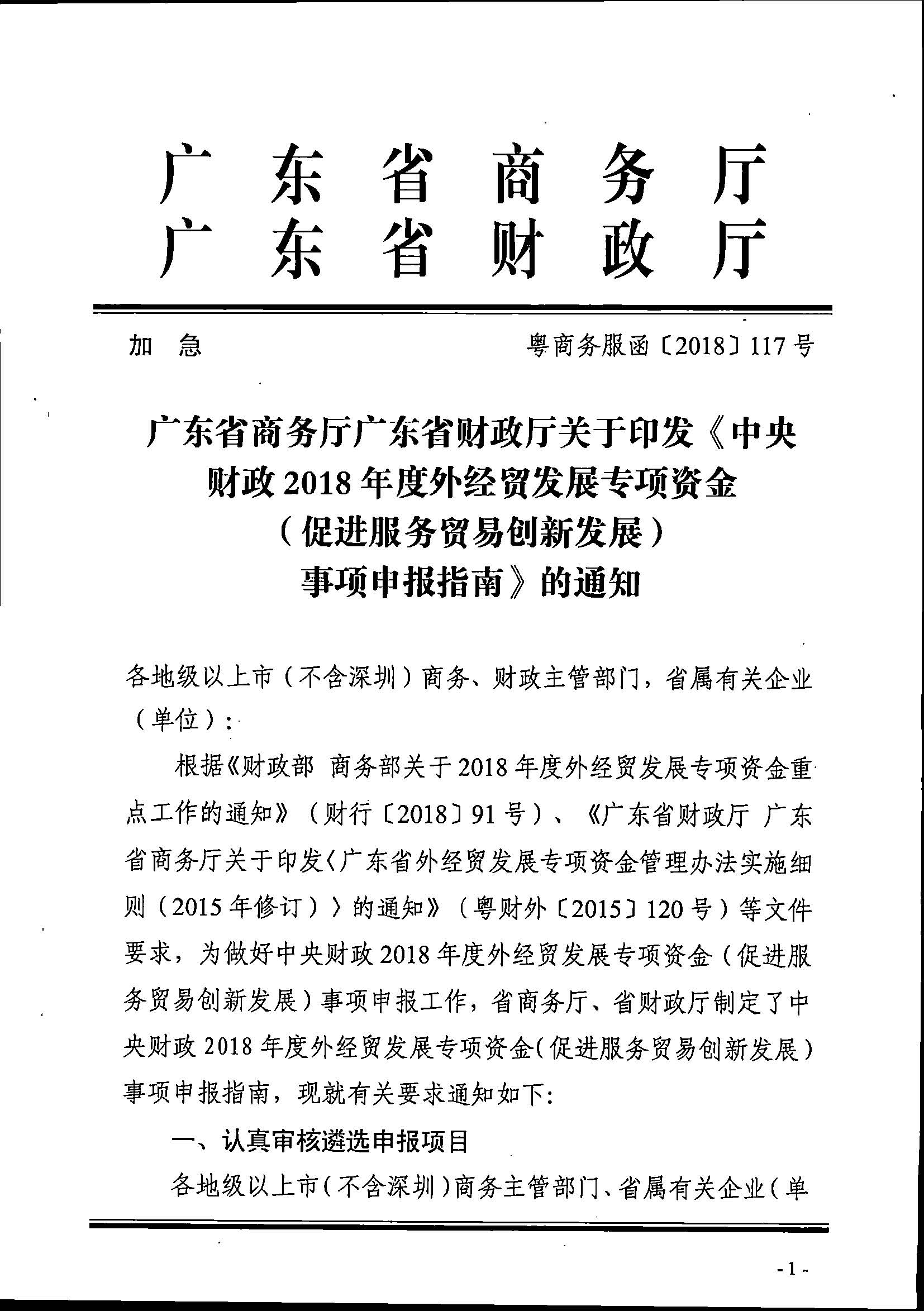 转发 广东省商务厅广东省财政厅关于印发《中央财政2018年度外经贸发展专项资金(促进服务贸易创新发展)事项申报指南》的通知