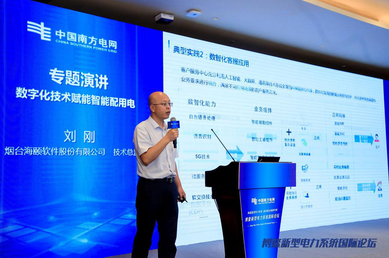 在论坛主题发言环节,海颐软件技术总监刘刚发表《数字化技术赋能智能配用电》演讲,分享在以新能源为主体的新型电力系统建设背景下,针对供电质量持续提升、快速响应客户等需求,依托强大的云计算、人工智能等数字化技术,构建数字化营销、数智化客服、配电网运行一体化及综合能源运营管理等应用,实现了配用侧的超强感知、信息聚合与智慧决策,有效提升电网智能运行和客户服务水平,助力能源企业数字化转型。