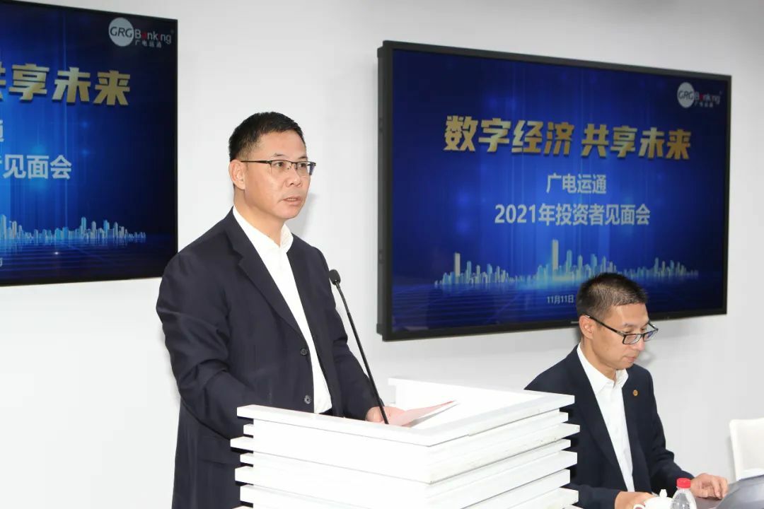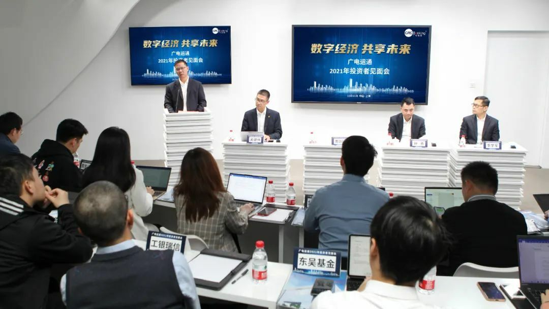11月11日,以“数字经济·共享未来”为主题的广电运通上海专场投资者见面会成功举行。二十六家机构投资者、券商莅临现场,广州无线电集团总经理、广电运通董事长黄跃珍,广电运通高级副总经理、董事会秘书钟勇,广电运通高级副总经理、鹏城实验室兼聘专家李学军,广电运通高级副总经理、广州数字金融创新研究院院长关健伟等公司领导就公司经营状况、战略规划等议题与现场嘉宾进行深入交流。