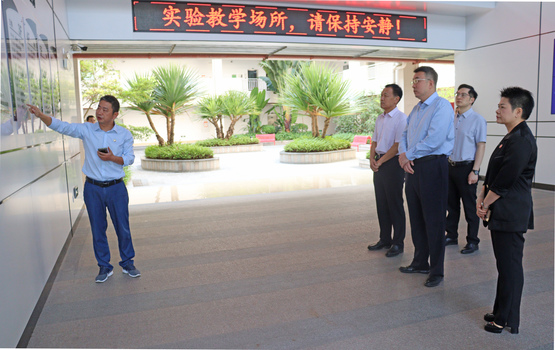 在知行楼、笃行楼,刘德伟重点考察了我校数字创意与艺术设计实验教学中心、计算机技术与应用实验教学中心,深入了解我校实验室等教育教学资源建设的情况。袁志介绍,近年来,我校以游戏制作开发专业作为重点发展方向之一,建设具有专业特色的3D打印工作室和VR实验室。同时,为满足互联网高速发展下学生制作视频的需求,学校专门设立影视拍摄创作实验室等。