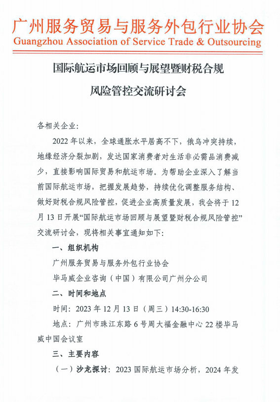 国际航运市场回顾与展望暨财税合规风险管控交流研讨会